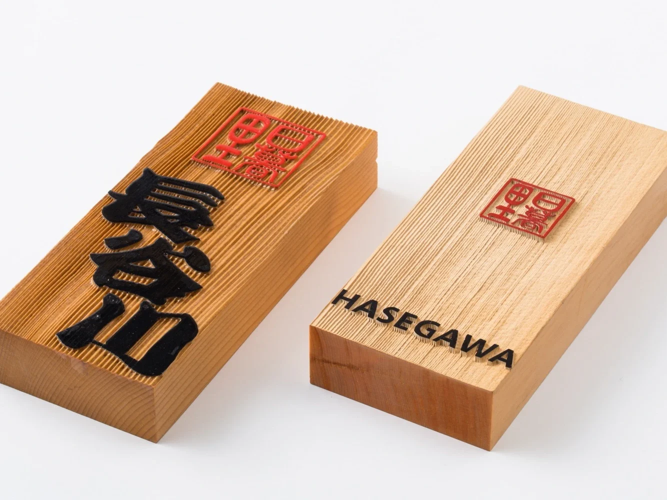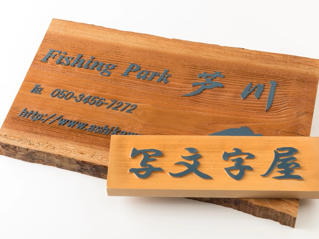 国産のヒノキを中心に加工しております。他材料等はご相談ください。また、ご希望により字入れ、サンドブラスト加工もお受けいたします。